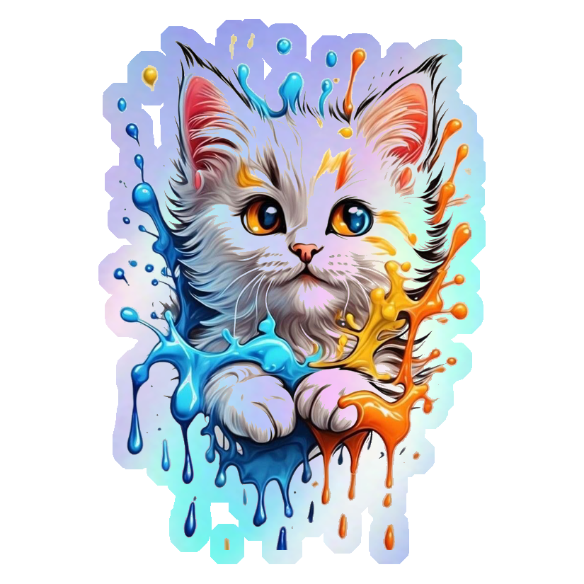 Colorful Splash Kitty Holographic Stickers