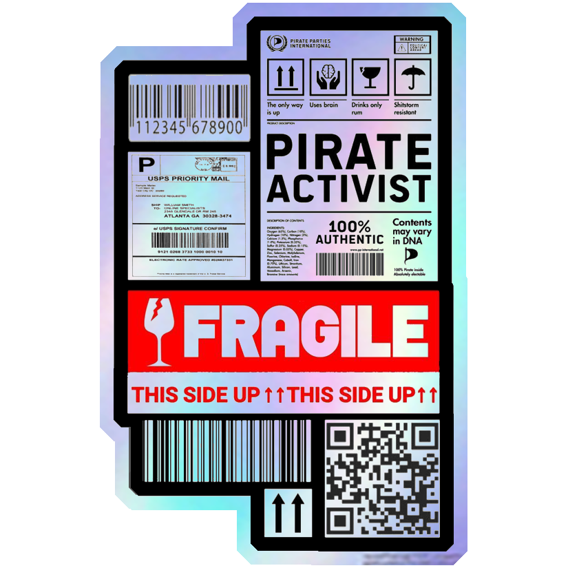 Pirate Activist Fragile Label Holographic Stickers