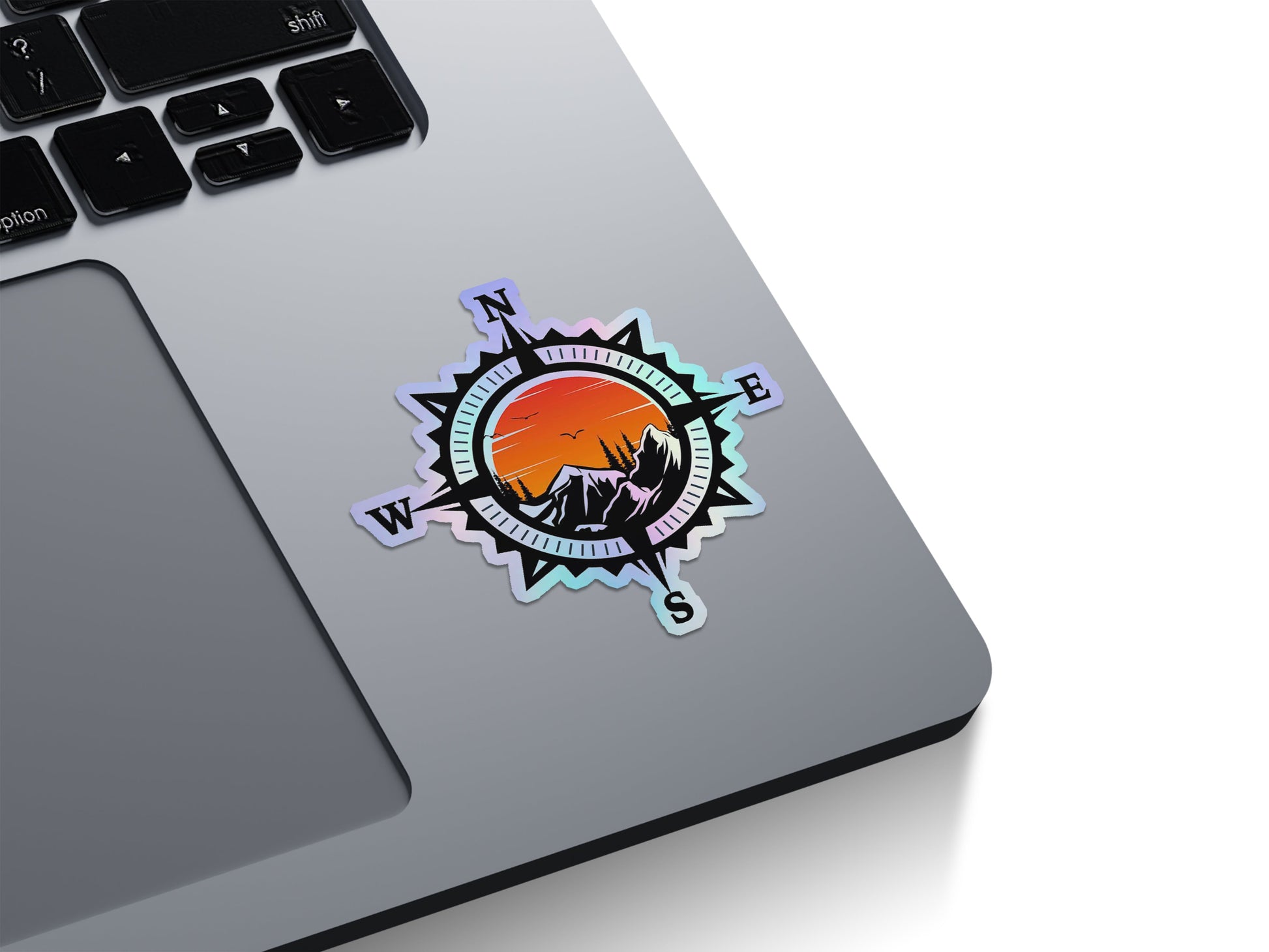 Adventure Compass Sunset Holographic Stickers